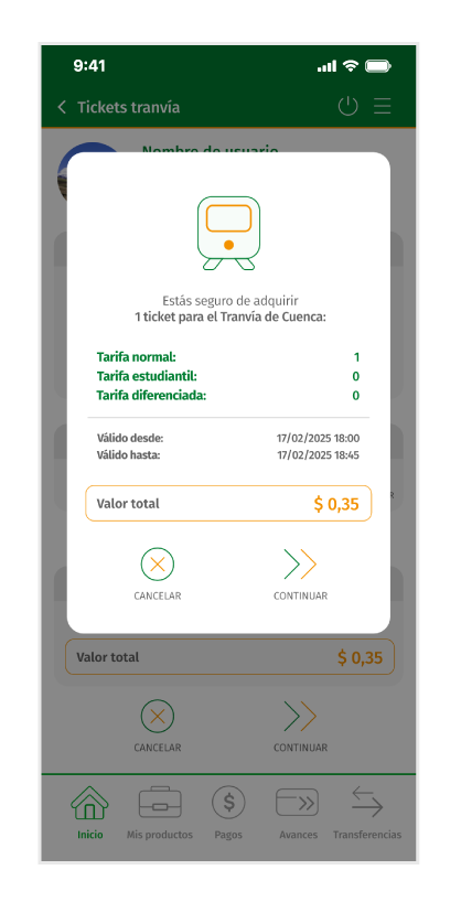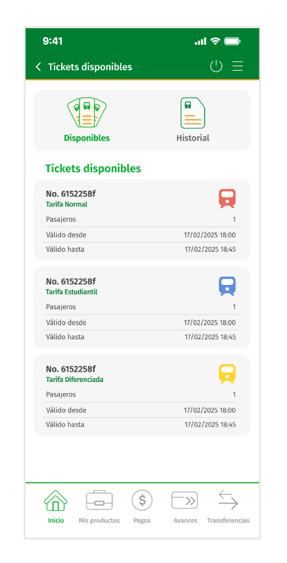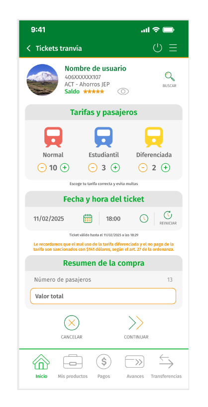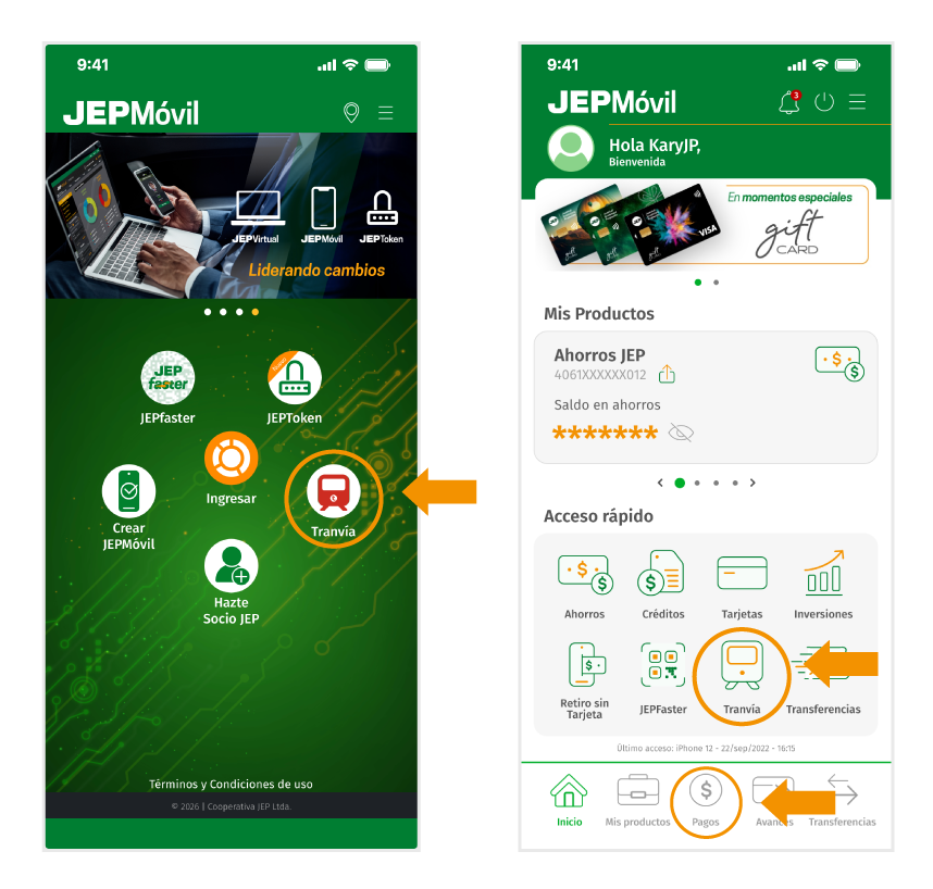 Mediante la aplicación JEPMóvil, el socio podrá realizar la compra de pasaje del TRANVIA, desde las siguientes opciones: